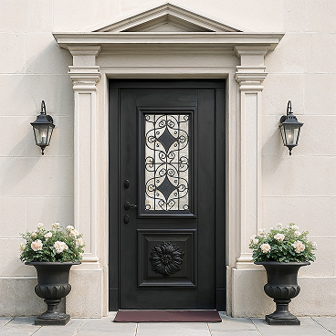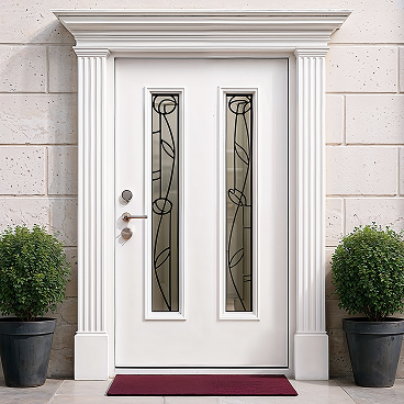 Парадные двери с элементами ковки становятся архитектурным акцентом фасада, подчеркивая индивидуальность дома. Двухстворчатые конструкции практичны для широких проемов, облегчая занос крупногабаритной мебели и техники. Арочные модели изготавливаются по индивидуальным размерам для нестандартных проектов. Покрытие методом порошкового напыления защищает металл от коррозии и выцветания, сохраняя первозданный вид десятилетиями.