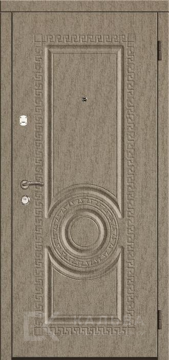Фото №2 «Железная дверь с серым меандром и классической панелью орех №144»
